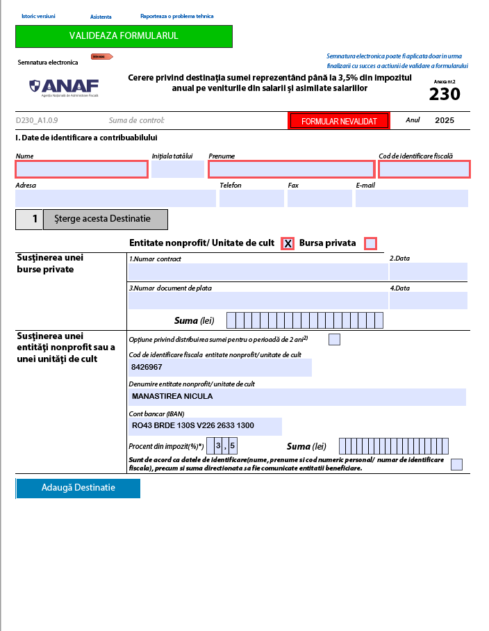 Poți redirecționa până la 3,5% din impozitul anual pentru susținerea entităților nonprofit care se înființează şi funcționează în condițiile legii sau unităților de cult.